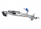 ● Передвижной носовой упор оборудован лебёдкой, имеет регулируемую высоту, угол наклона. Он может быть отрегулирован и установлен в наиболее удобном положении для модели перевозимого судна. Лебёдка облегчает погрузку судна на прицеп и страхует его при спуске на воду.